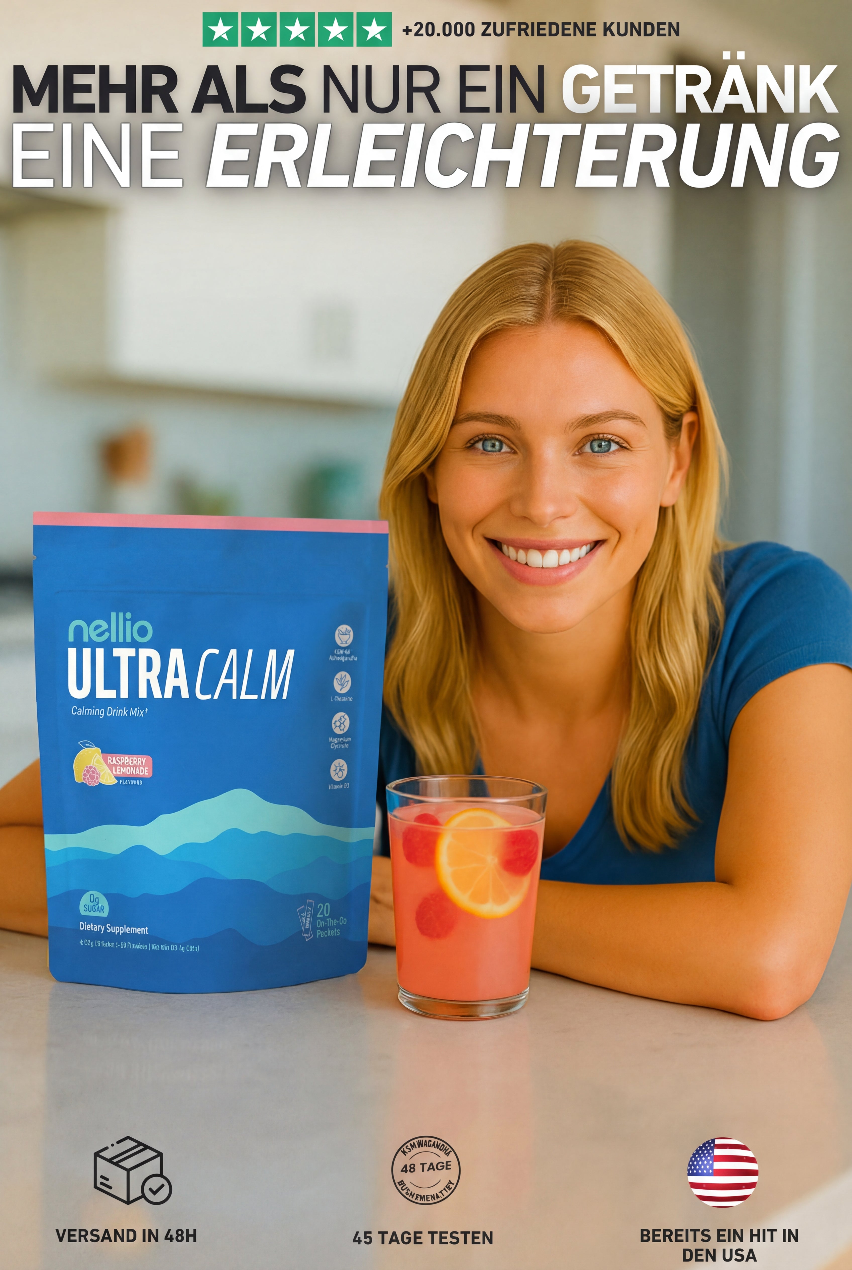 WICHTIG: Das originale UltraCalm wird ausschließlich von Nellio verkauft. Wir können weder die Qualität noch die Sicherheit von Nahrungsergänzungsmitteln mit ähnlicher Verpackung garantieren, die anderswo gekauft werden. Um sicherzugehen, dass Sie ein geprüftes und sicheres Produkt erhalten, bestellen Sie nur hier, auf unserer offiziellen Website.
